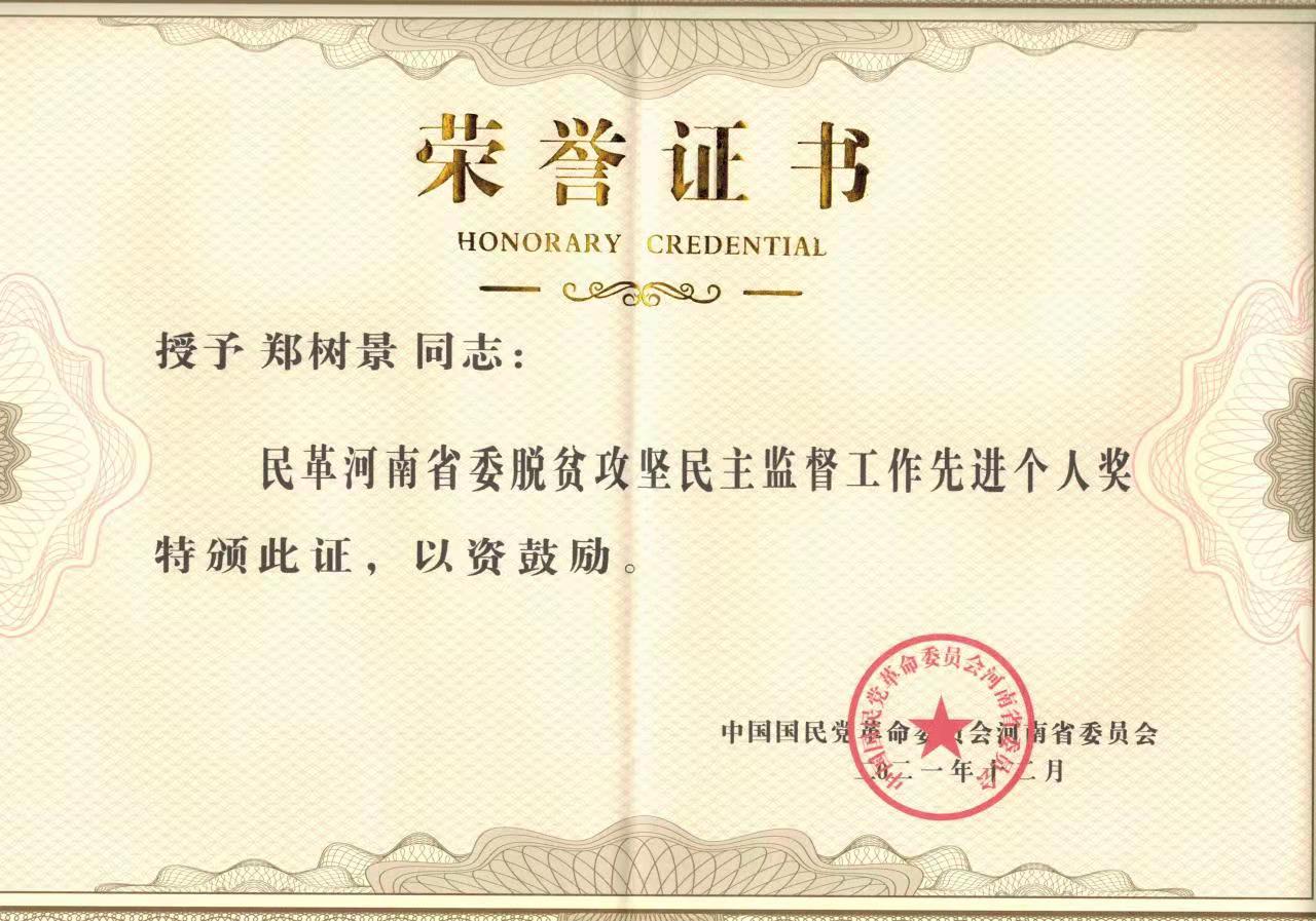 3月4日,在民革新乡市委会十届七次全体(扩大)会议上通报了我校民革支部主委、教务处副处长郑树景获“民革河南省委脱贫攻坚民主监督工作先进个人”“民革河南省委会参政议政工作作出突出贡献先进个人”“民革新乡市委优秀党员”等多项荣誉称号。