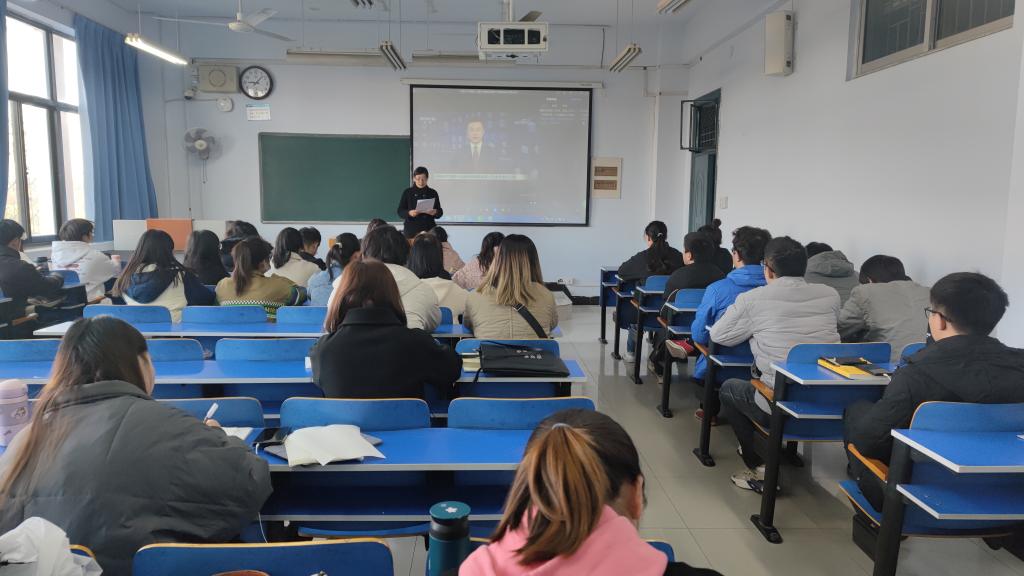 11月25日,党委统战部党支部在6304教室与联点班级园林201班举行学习贯彻中国共产党十九届六中全会精神主题党日暨主题团日活动,活动由支部书记、党委统战部常务副部长宋荷英主持。