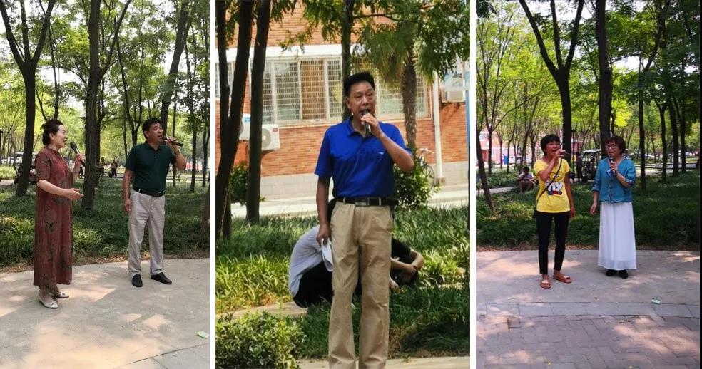 在河南科技学院安置点,为丰富受灾群众的精神文化生活,我校省政协委员及红旗区政协委员几位党外人士,积极协调组织戏曲爱好者,与离退处戏曲组的老同志们一起,自8月3日起,每天在学校下沉式广场为乡亲们送上戏曲大餐,深受老乡们的欢迎和喜爱,时不时有老乡情不自禁上场演唱。