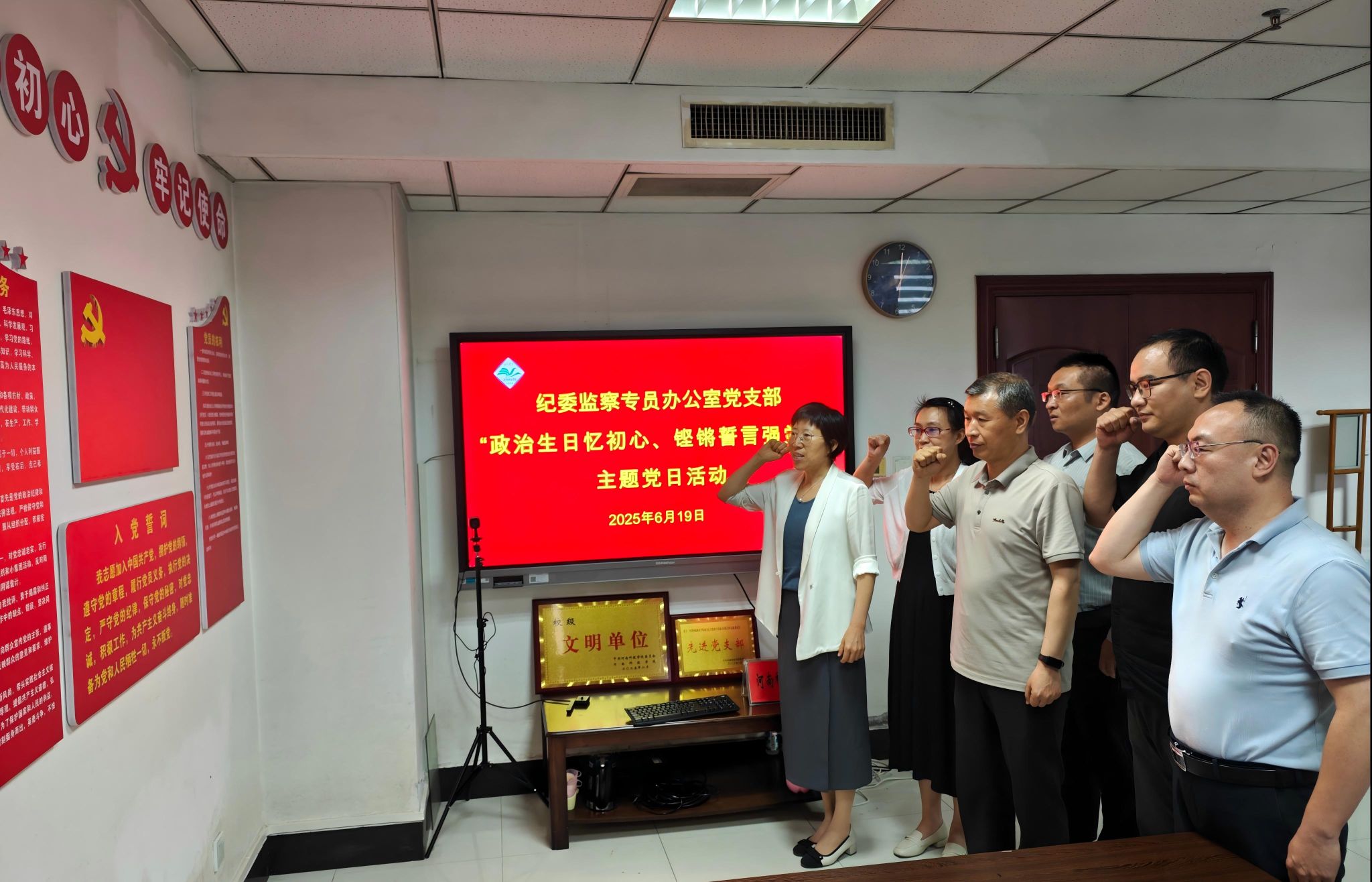 为强化党员身份意识,筑牢初心使命根基,6月19日,纪委监察专员办公室党支部开展“政治生日忆初心,铿锵誓言强党性”主题党日活动。党支部全体同志参加本次活动。