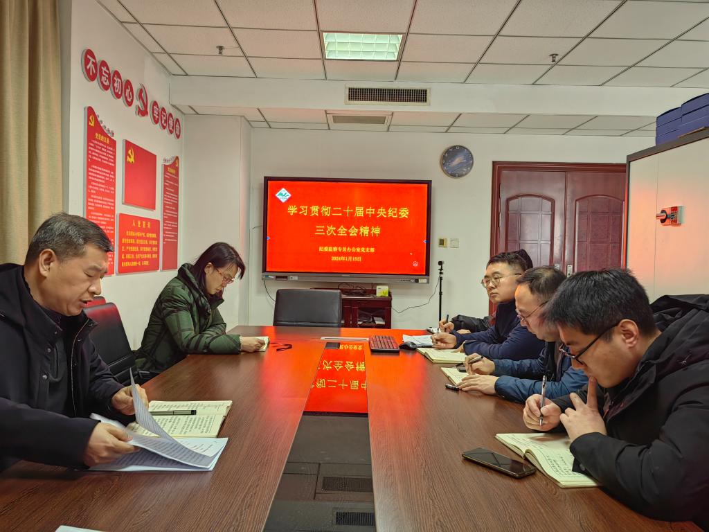 1月15日下午,纪委监察专员办公室党支部在办公楼711会议室召开支部党员大会,传达学习贯彻习近平总书记在二十届中央纪委三次全会上的重要讲话和全会精神。会议由党支部书记张玉新主持。