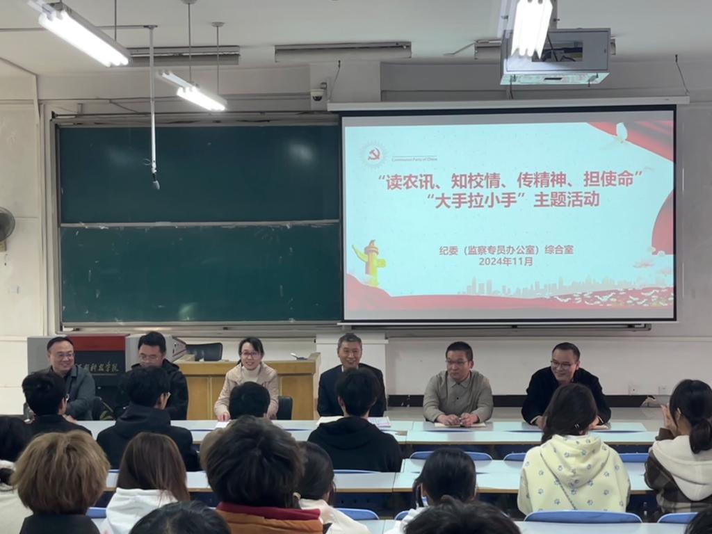 为推进机关干部联系班级工作落实见效,践行“三全育人”理念,校纪委监察专员办公室联系美术与设计学院美术241、242和动画241、242四个班级,开展“读农讯、知校情、传精神、担使命”主题党日活动。活动由校纪委第二纪检监察室主任李军庆主持。