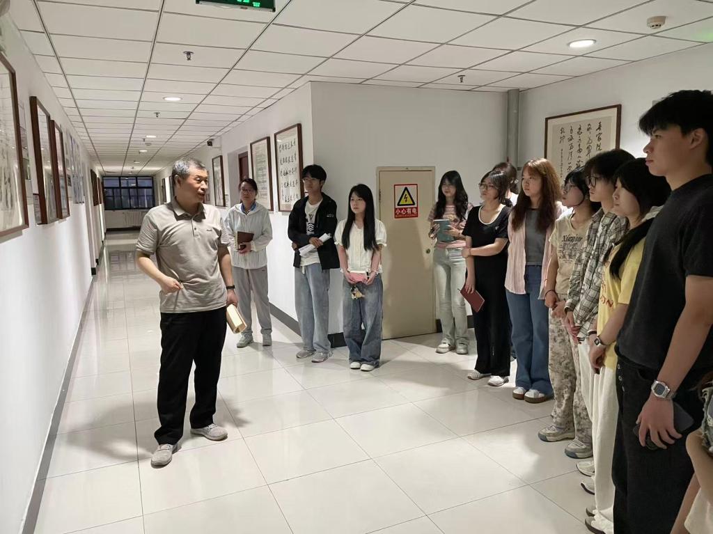 随后,党支部成员引领同学们参观了位于7楼的“廉政文化廊--诗词篇”,共同赏析了由美术与设计学院书法班同学书写的29首廉政诗词作品。党支部书记张玉新对部分代表作品进行了深入细致的讲解,从习近平总书记的词作《念奴娇·追思焦裕禄》中的“路漫漫其修远矣,两袖清风来去”,到郑板桥的题画诗《潍县署中画竹呈年伯包大中丞括》中的“一枝一叶总关情”。张玉新从诗词的创作背景、作者的为民情怀,到修辞手法和书法功底,讲解得情真意切、娓娓动听,同学们听得津津有味、频频点头。