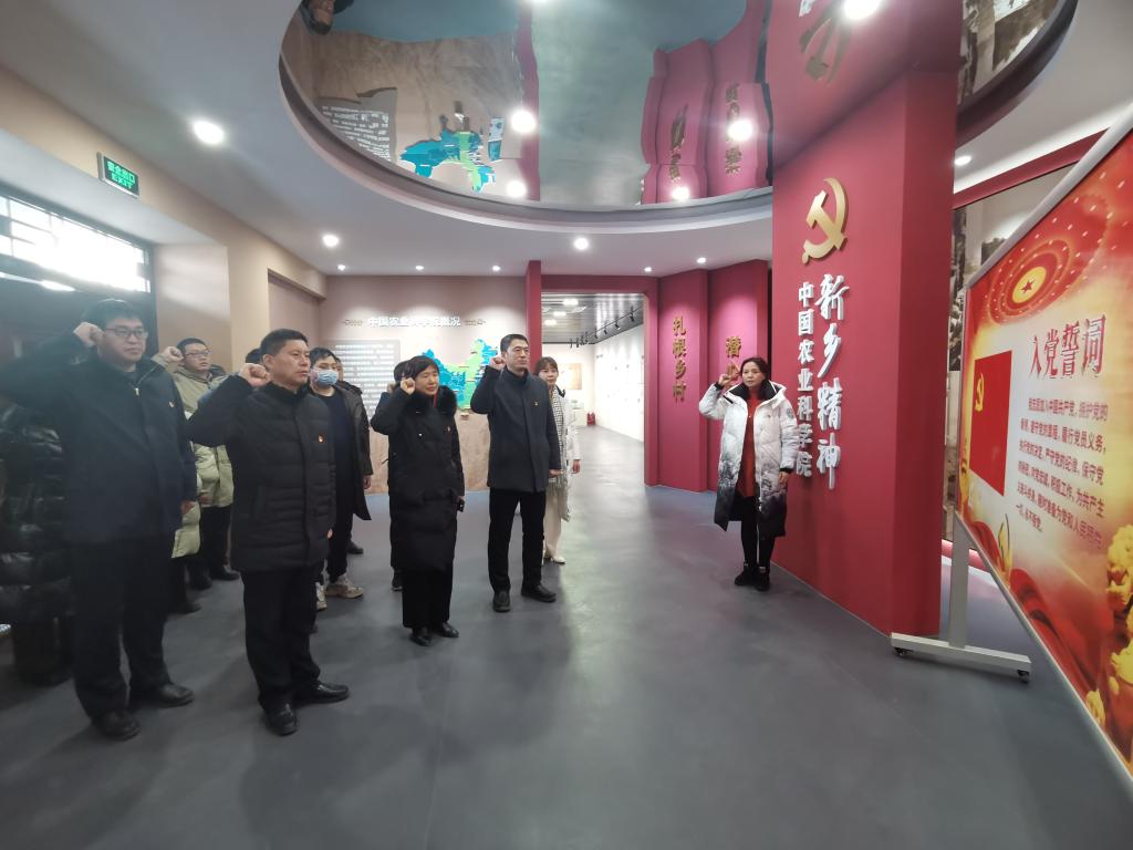 参观结束后,全体党员举行了重温入党誓词宣誓仪式。大家表示要以科学家为榜样,把扎根基层、求真务实、攻坚克难、潜心科研的精神薪火相传,“新乡精神”将激励大家积极投身教学、科研、服务的工作实践中,为学校事业高质量发展多作贡献。