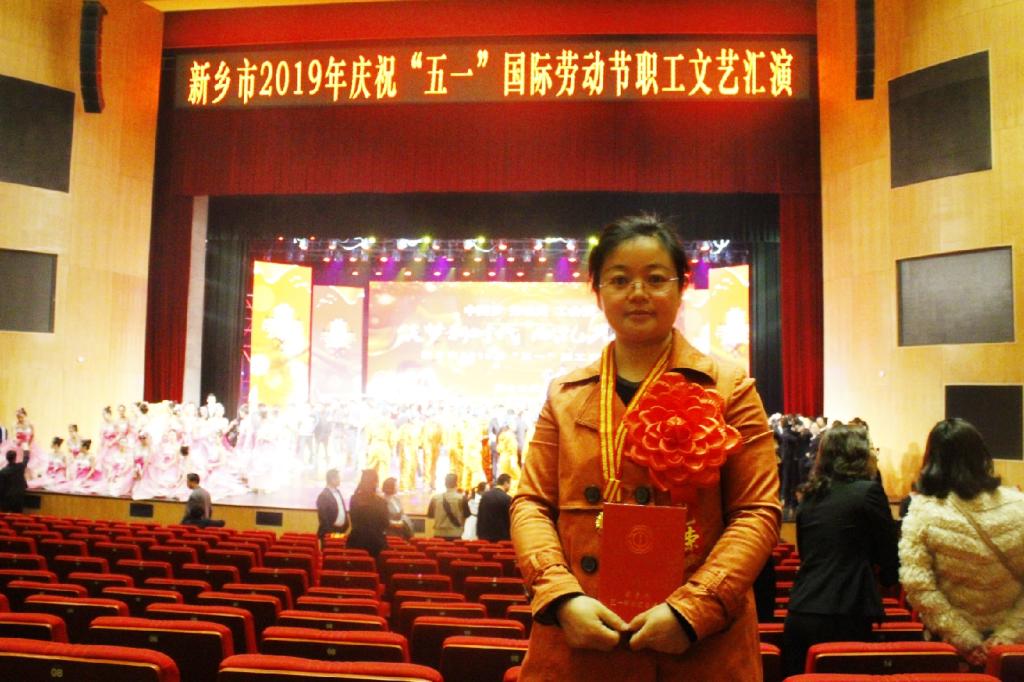 4月29日上午,新乡市庆祝“五一”国际劳动节暨五一劳动奖表彰大会在市平原文化艺术中心召开,表彰新乡市各条战线上涌现出来的先进集体和个人。我校艺术学院商亚敏老师荣获“新乡市五一劳动奖章”。