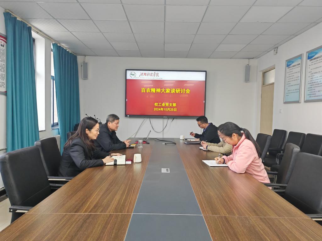 为弘扬和传承“百农精神”,校工会党支部于10月25日上午在校工会会议室开展了“百农精神”大家谈研讨会。研讨会由校工会党支部书记张涛主持。