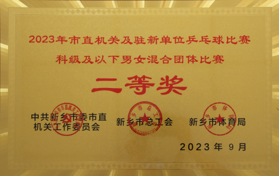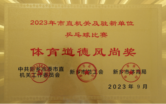 近日,由新乡市委市直机关工委、市总工会主办的2023年市直机关及驻新单位乒乓球比赛在新乡学院附属中学举行。经过3天激烈的比赛,我校荣获体育道德风尚奖和科级团体二等奖。单打比赛中,王洪亮、李印分别获处级干部混合单打第六、七名。
