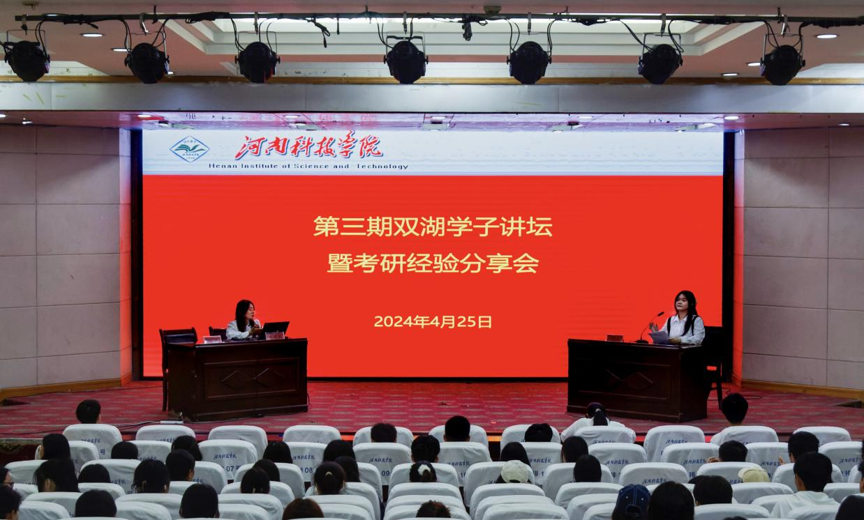 为了帮助学生更好地了解考研形势,明确学习目标,掌握学习方法,提升专业素养,4月25日晚,我校在图教201举办了第三期双湖学子讲坛暨考研经验分享交流会。分享会邀请了信管203班赵朋和应化204班张国灿两位同学做考研经验分享,各学院2021级、2022级、2023级学生代表参加会议。