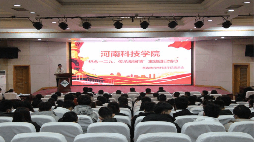 12月9日晚,在图教201报告厅,校团委举办了“纪念一二九,传承爱国情”沉浸式主题团日活动,校团委老师、学生团干、本学期99名新发展团员、联点团支部成员共200余人参加了活动。