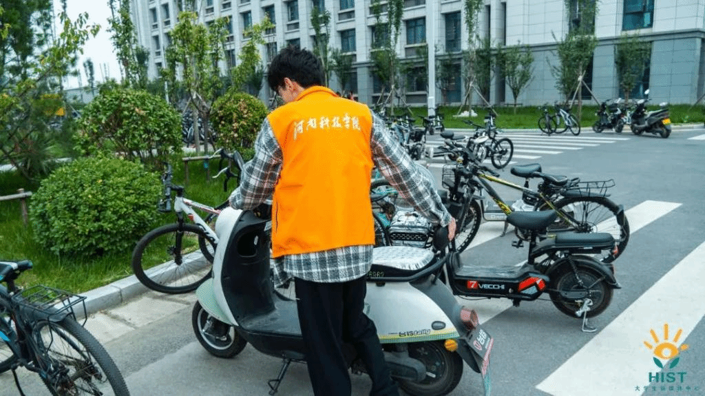 活动中,志愿者们把“摔倒”的自行车扶起来,将杂乱随意停放的电动车、自行车推到指定停放点摆放整齐,同时向过往师生积极宣传文明出行、有序停放的重要意义,引导师生将自行车摆放到指定停放区域,普及消防安全知识,保障师生出行安全有序。经过志愿者们的共同努力,校园内的自行车、电动车摆放越来越整齐有序,校园环境得到进一步改善。