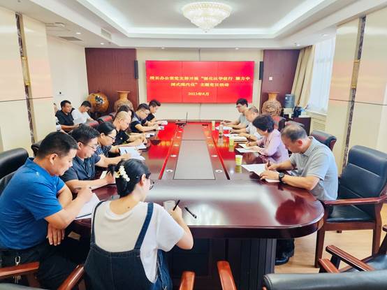 为深化学习贯彻习近平新时代中国特色社会主义思想主题教育,在深学笃行中践行初心使命,8月31日,校长办公室党支部在行政楼1111会议室,开展“强化以学促干 聚力中国式现代化”主题党日活动。校长办公室全体党员参加会议。