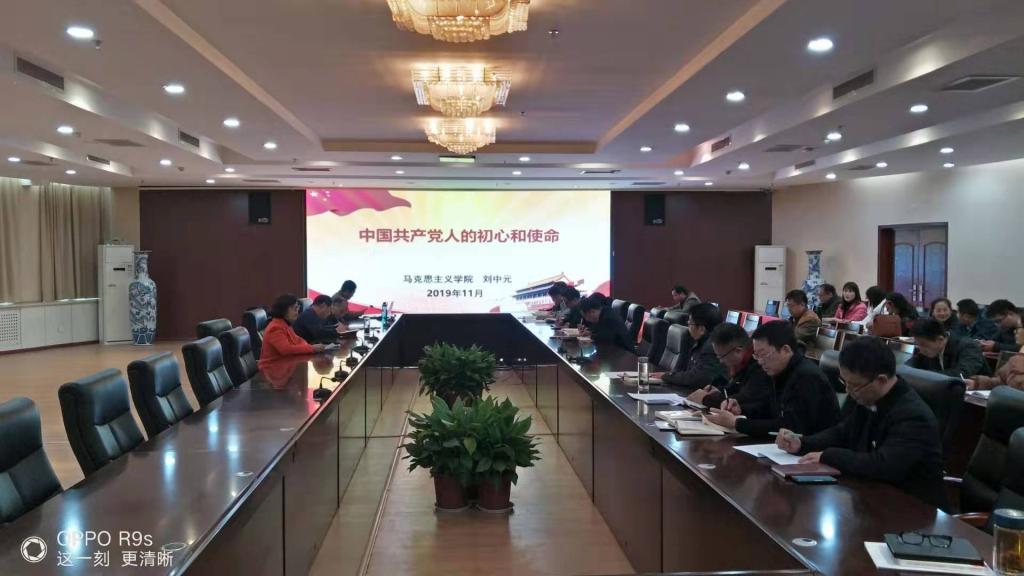 刘中元以《共产党人的初心和使命》为题,从“中国共产党人的初心和使命是什么”“为什么要强调不忘初心、牢记使命”“中国共产党人的初心和使命实现的怎么样了”“不忘初心,牢记使命,建功新时代”等方面,为大家作了一场非常精彩的报告,报告内容丰富,深入浅出,史料详实,思路清晰,讲解生动,深刻解读和阐释了我们共产党人的初心和使命,有很强的指导意义和针对性,使与会人员深受教育和启发。大家表示,要守好服务师生初心,担好落实立德树人根本任务使命,在推进区域特色骨干大学建设中建功立业。