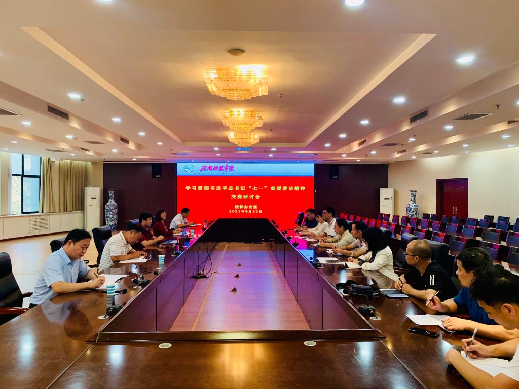 为深入学习贯彻习近平总书记在庆祝中国共产党成立100周年大会上的重要讲话精神,推动党史学习教育进一步走深走实,9月23日下午,校长办公室党支部在办公楼206会议室召开习近平总书记“七一”重要讲话精神专题宣讲暨学习交流会,支部全体党员参加。会议由党支部书记张彦军主持。