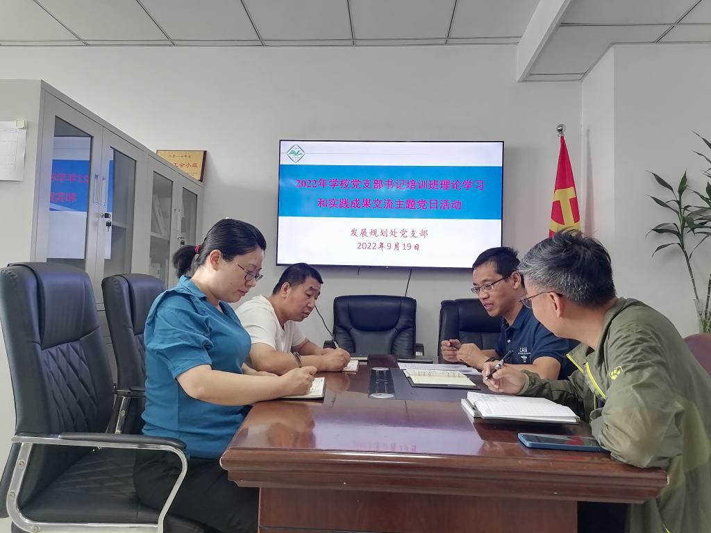 9月19日,发展规划处党支部在行政楼510室开展2022年学校党支部书记培训班理论学习和实践成果交流主题党日活动。发展规划处党支部全体成员参加活动。