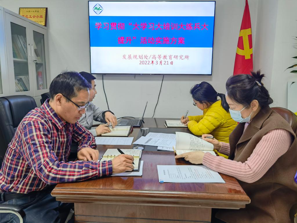 3月21日,发展规划处在行政楼510室召开会议学习贯彻“大学习大培训大练兵大提升”活动实施方案。部门全体工作人员参加会议,会议由处长郭运瑞主持。