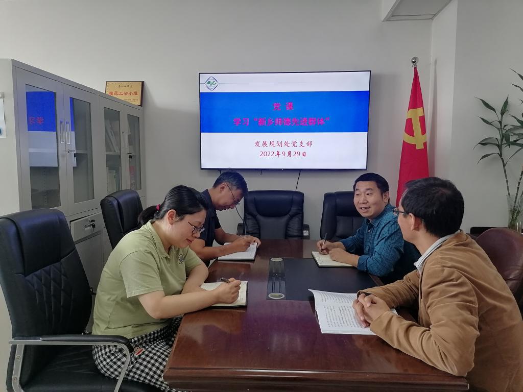 9月29日,发展规划处党支部在行政楼510室开展学习“新乡师德先进群体”党课。发展规划处党支部全体党员参加会议。