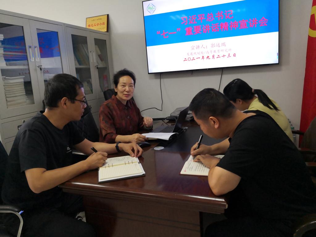 9月23日上午,发展规划处在行政楼510召开习近平总书记“七一”重要讲话精神宣讲会。部门全体工作人员参加会议,会议由处长郭运瑞主持。
