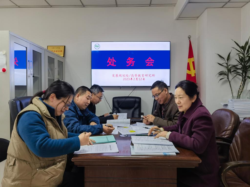 2月12日,发展规划处在行政楼510室召开处务会研究部署新学期工作。部门全体工作人员参加会议,会议由处长郭运瑞主持。