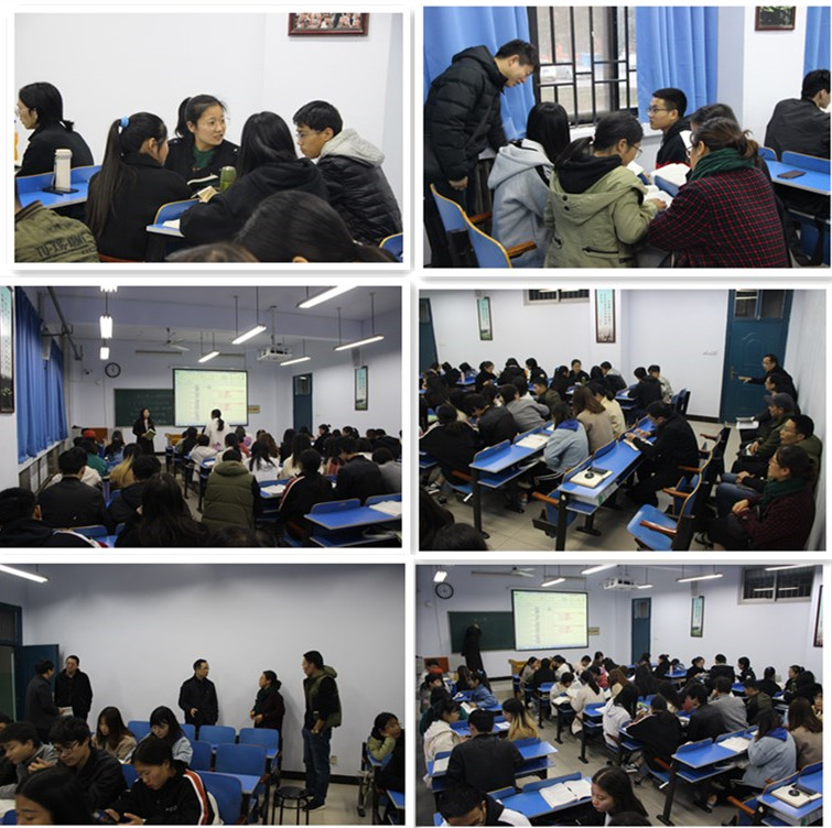 课堂上,霍治平老师首先回顾了上次课程的主要内容,随后学生进行小组讨论。学生4个人一组,围绕读书笔记中的“亮考帮”展开讨论,每个学生都积极参与,课堂气氛热烈而有序。小组讨论20分钟后,进行小组发言和自由发言,分享小组讨论成果,提出尚未解决的问题。最后霍老师根据学生们提出的共性问题进行答疑。课后,参会教师针对“对分课堂”教学模式的理论与实践情况进行了深入探讨,分享了自己的经验与观点,并表示本次教学观摩活动的顺利举办,对教师进一步了解对分教学模式如何实施,激发广大教师特别是中青年教师精心钻研课堂教学业务、提高课堂教学质量、提升课堂教学水平、提高人才培养质量具有重要意义。