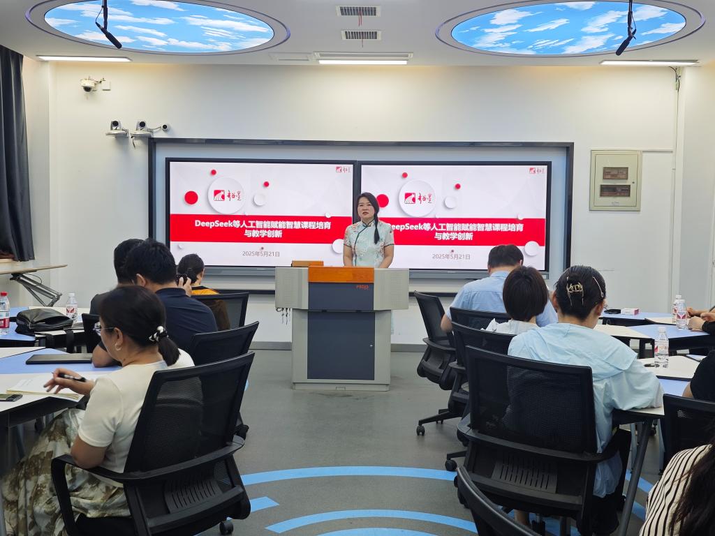 为进一步推动教育数字化转型与教学创新能力提升,助力教师利用人工智能技术构建智慧课程,教务处于5月21日下午在9号楼智慧教室举办教育教学工作坊第九期活动,本次活动聚焦“人工智能赋能教学改革创新与智慧课程培育——基于教学平台智慧升级的探索与实践全流程”主题,邀请超星集团课程总监孔鑫凯作为主讲嘉宾,活动由教务处副处长兼课程中心副主任苏喜庆主持。