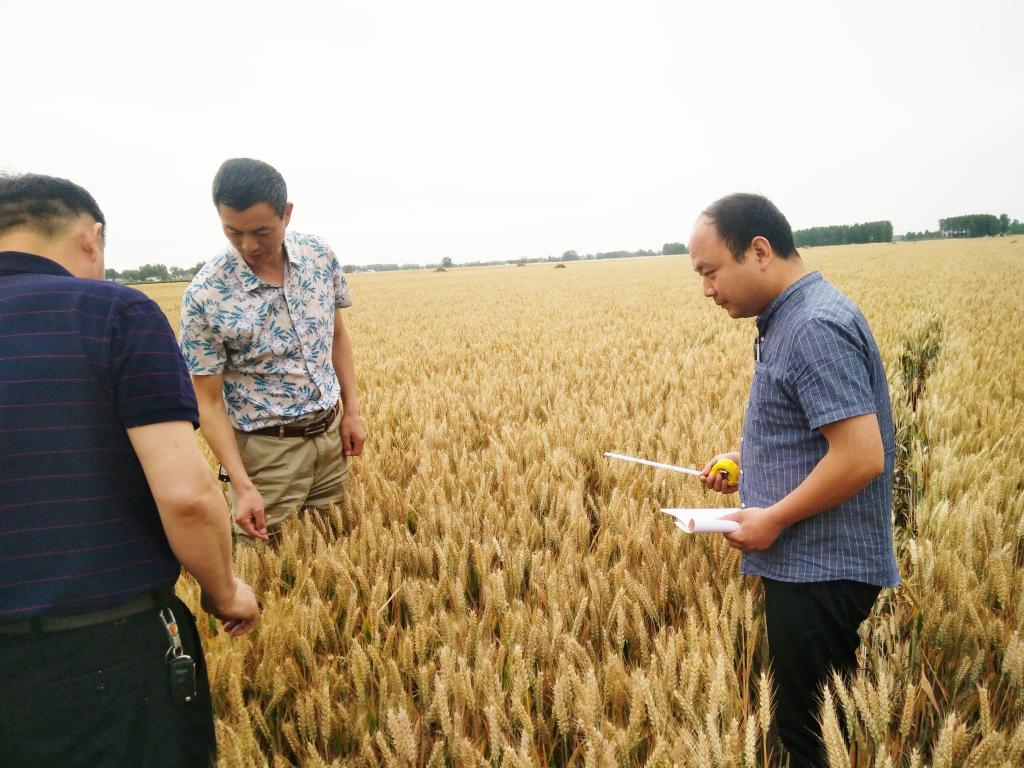 刘明久院长组织大家对小麦新品种百农207千亩方示范田进行三点法测产,预计产量在650公斤以上,比原种品种增产50-100公斤。刘院长表示,今年百农207又是一个丰收年,虽然前期干旱,但在后期灌浆饱满,品种的稳产性和丰产性再一次展现,在豫东开展该品种的示范和推广工作是可行的,通过合作社+农户的做法有利于群众增产增收,对群众脱贫致富起到积极作用。