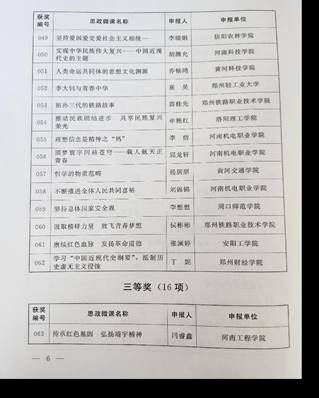 本次大赛由河南省社会科学研究界联合会、河南省高等学校思想政治理论课教学指导委员会举办。来自省内高校和河南省社科联的多名专家学者组成了评审委员会,经过初评、定评两个阶段,最终评出了思政微课、思政微视频、大学生主题微视频三大申报类别的一、二、三等奖。
