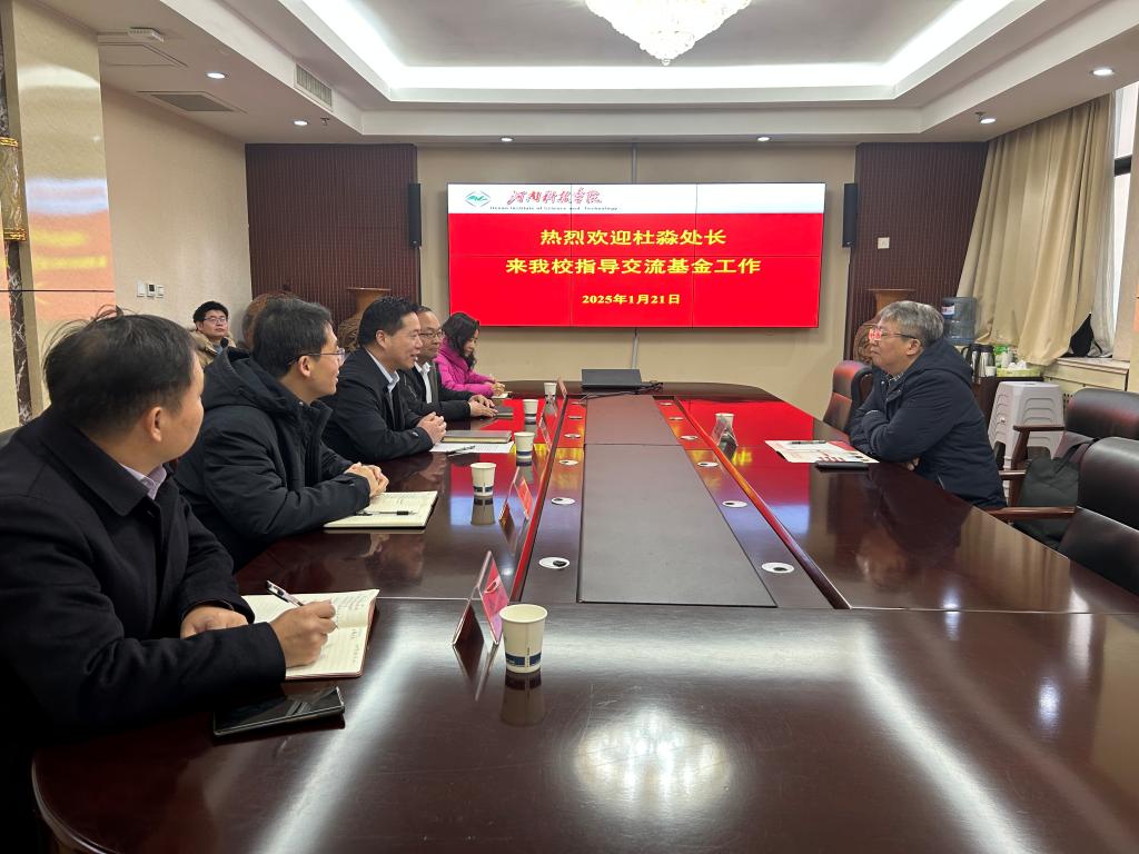 1月21日下午,郑州轻工业大学科技处处长杜淼教授来我校指导交流,双方在办公楼901会议室举行交流座谈会,副校长丁轲,科技处、成果转化与合作办公室相关负责人参加会议,会议由科技处负责人主持。