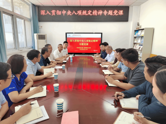 6月16日,校党委副书记王庆兵在实验楼A102会议室为学生处党支部、校团委党支部全体党员讲授深入贯彻中央八项规定精神专题党课。
