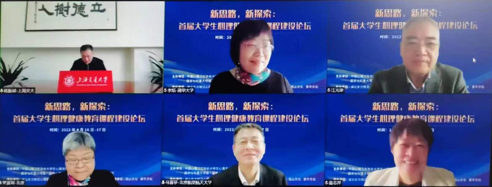4月16-17日,心理中心组织全体任课教师参加了首届云端大学生心理健康教育课程建设论坛。论坛由中国心理卫生协会大学生心理咨询专业委员会主办,以新时代大健康观指导下的国民心理健康服务为背景,聚焦于大学生心理健康教育课程建设的新思路、新探索,发表专家意见,展示实践创新,交流学术研究。