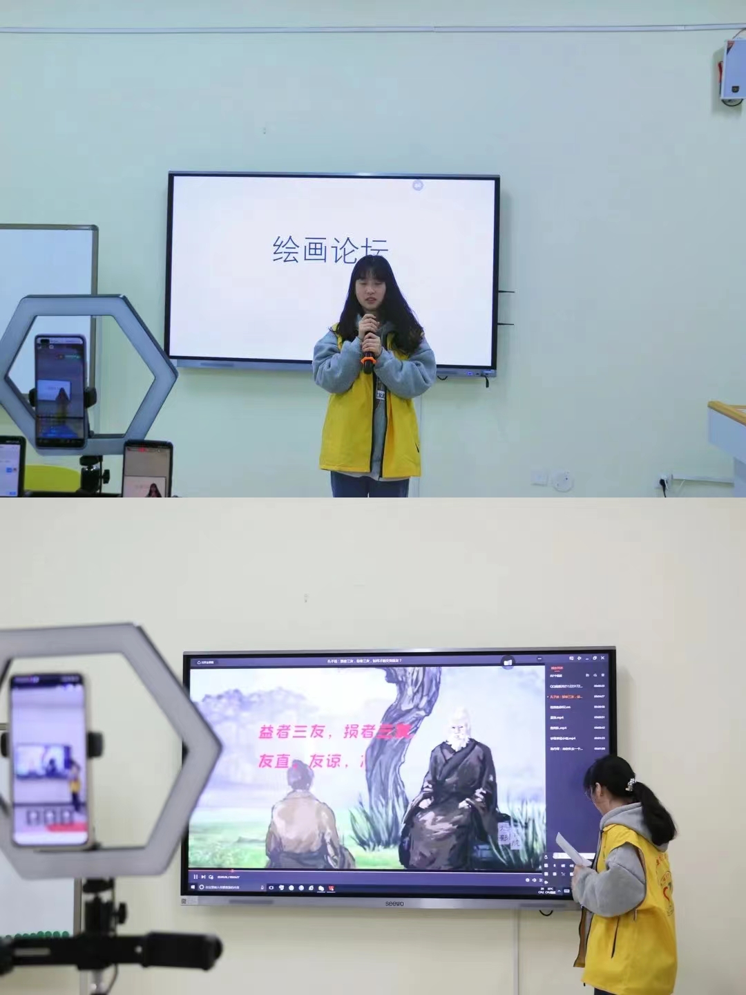 本次绘画论坛活动全部为线上进行,分别以师生、益友、亲情、告别、初见为主题,分享自己对这些话题的理解与感悟,并创作绘画作品,累计有200余名同学参加活动并提交绘画作品。