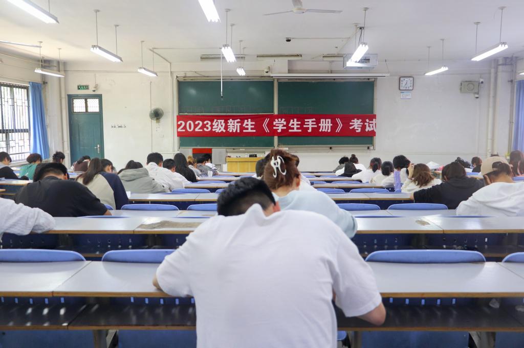 为扎实推进学风建设,规范自身行为习惯,增进同学们对学校各项规章制度的了解,进一步加强我校基础管理建设,11月2日中午,在10号教学楼合一、合二、合六教室,我校组织2023级200多名学生进行了《学生手册》考试。