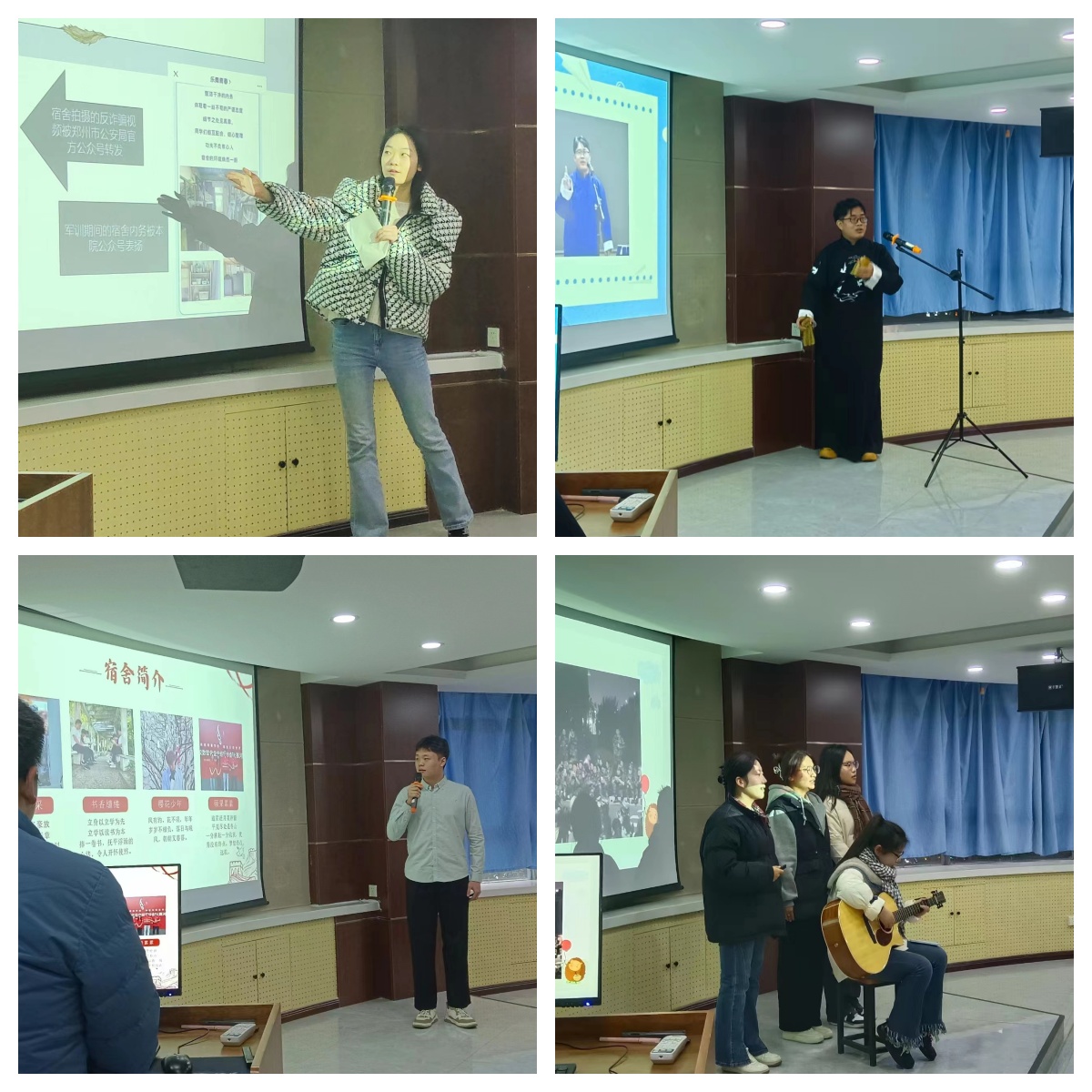 经过前期学院申报和学生处复查,全校共有23个特色宿舍参加本次展示评选活动。展示现场选手们参与热情高涨,通过主题演讲、才艺展示、相声表演等形式充分展现了各自宿舍的基本情况以及在科创、学习、才艺、活力、党员模范和温馨氛围营造等方面的特色创建情况。最终,共有10个宿舍脱颖而出,被评为“十佳特色宿舍”。