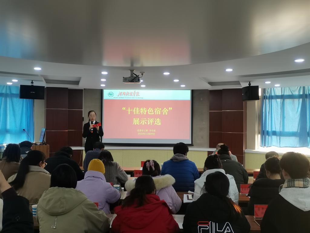 11月29日下午,由学生处主办的我校“十佳特色宿舍”展示评选活动在实验楼A300会议室顺利举行。学生处、校团委、保卫处、后勤服务中心相关负责人,各学院辅导员代表以及学生组织代表作为评委参加活动。