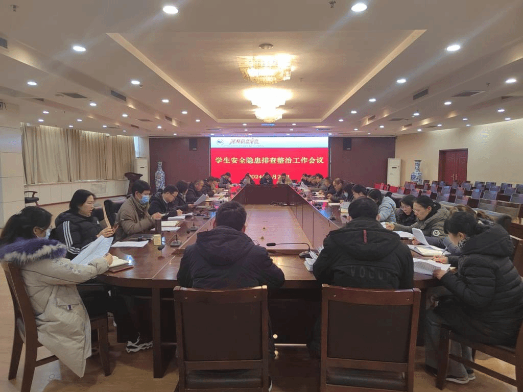 1月22日下午,我校在办公楼206会议室召开学生安全隐患排查整治工作会议,学生处班子成员、研究生处负责同志、各二级学院党委副书记参加会议,学生处处长冀红举主持会议。