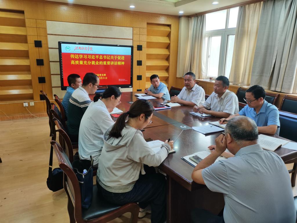 会上,冀红举逐条、逐句领学了习近平总书记在中共中央政治局第十四次集体学习时的重要讲话精神,重点学习了习近平总书记讲话中提到的“三个事关”“八个坚持”“五个要”;就业创业指导中心副主任李月涛领学了《河南省教育厅办公室关于开展2024届河南省高校毕业生就业“百日冲刺”行动的通知》文件精神,学生处就业科工作人员结合工作实际,详细介绍了目前我校2024届毕业生总体就业情况以及各学院访企拓岗工作开展情况。随后,学生处全体工作人员结合习近平总书记重要讲话精神以及我校就业工作实际,围绕如何破解毕业生就业工作中出现的难点、堵点问题展开积极讨论。