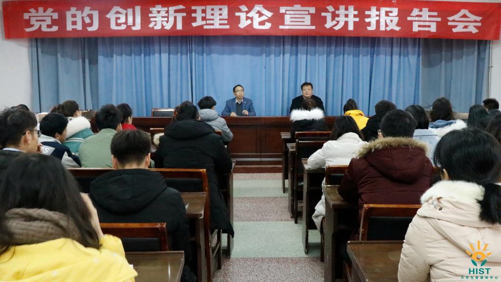 12月22日上午,党委学工部“党的创新理论”宣讲报告会在团学第一会议室举行。党委学工部部长、学生处处长翟居怀做题为“党的十九大精神与改革开放40年”宣讲报告,各学院团学干部和学生代表150余人参加了报告会。报告会由校团委书记于江傲主持。