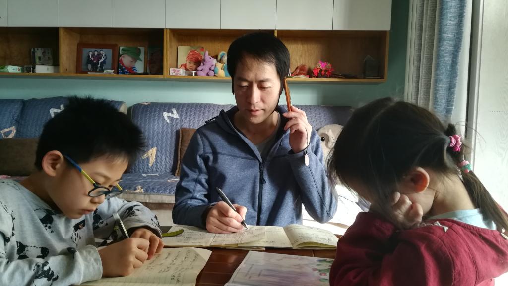 杨胜利老师的爱人在女子监狱工作,自疫情爆发以来,爱人奋战在管理和防控一线,已经近一个月没有回家了,他独自带着两个娃娃,平日里既是爸爸,又是妈妈,每当孩子们心心念地问“爸爸,妈妈什么时候能回来啊?”他总是说,妈妈在工作,再过两天就回来了……