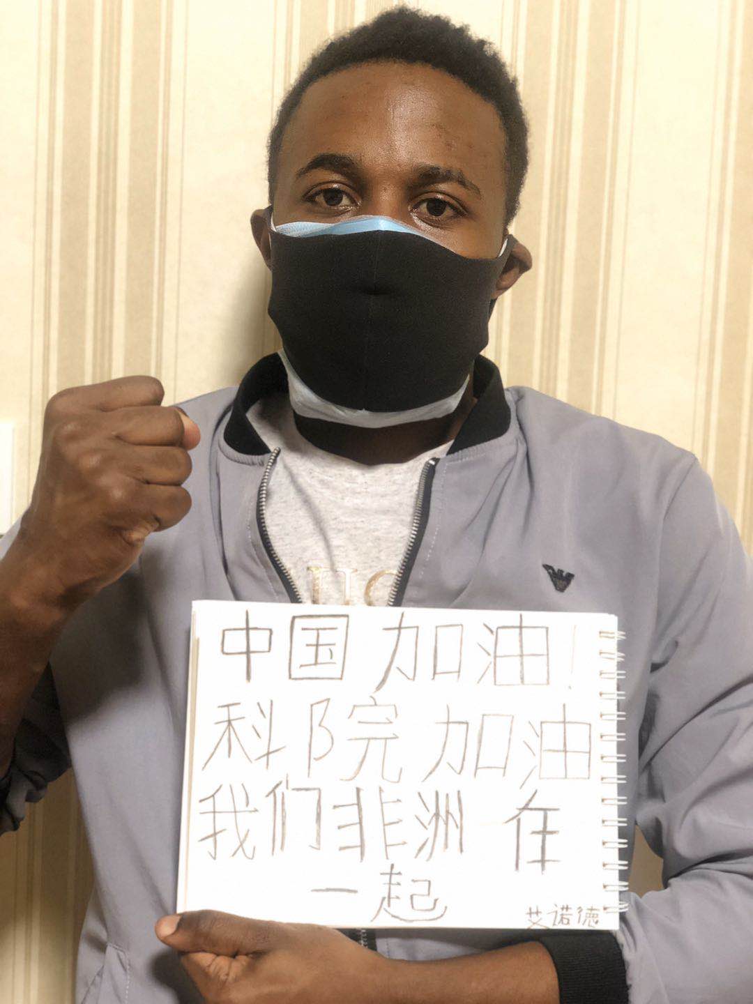 当晚九点,艾诺德体温为36.7度,已基本正常。我们怕他紧张,就通过微信跟他聊天,告诉他没有接触史不要担心,并叮嘱他按时吃药、多穿衣服、喝热水(非洲学生普遍喜欢喝冷水)、不要出门。聊天中,学生心态逐渐放松。