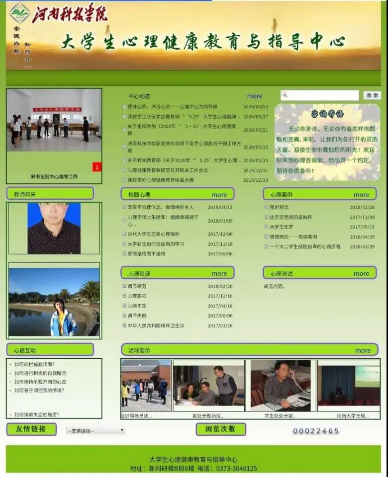 心理中心网址:http://xlzxzx.hist.edu.cn/,开设有中心动态、校园心理、心理案例、心理资源、心理测试和心理互动等栏目,将发布有关心理健康、心理调节的相关内容,以更好的服务广大师生,敬请关注。