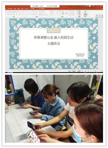一是精心制作PPT,对复学后如何调整心态、如何尽早适应学习生活以及常见心理问题进行梳理,提升大家认知层面的心理适应能力和心理弹性。同时,从生理、情绪、行动三个层面科学指导,提醒大家调整作息,遇到不愉快、焦虑、恐惧等情绪时学会合理宣泄和及时调节;二是组织大家进行研讨,分享自己遇到心理困扰时自我疏导的经验;三是组织观看《同心战“疫”》《在战疫中成长》等纪录片,感受亿万人民同舟共济的磅礴力量,激励大家增强自信,以一种平和、正向、阳光的心态过好每一天。