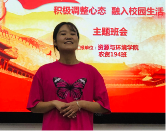 9月8日至15日,资源与环境学院围绕“积极调整心态,融入校园生活”的主题,采用线上线下相结合的方法,开展了内容丰富、形式多样的心理健康教育主题班会。为了提高大家的参与度,提升此次主题班会效果,各班认真制定班会方案,增加了线上合唱、有问必答、观看心理健康视频、微电影、个人演讲、诗歌朗诵、心理小游戏等活动。同学们主动分享了疫情期间心理调整方法和心灵感悟,此次班会交流,让同学们更加重视心理健康调适,为以后的学习和生活筑起一道坚固的心理防线。