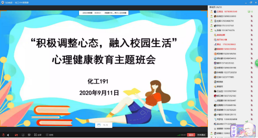为做好秋季学期返校复学后学生心理健康教育工作,帮助学生更好地适应返校后的学习与生活环境,化学化工学院组织开展了心理健康教育主题班会。班会由各班心理委员主持。