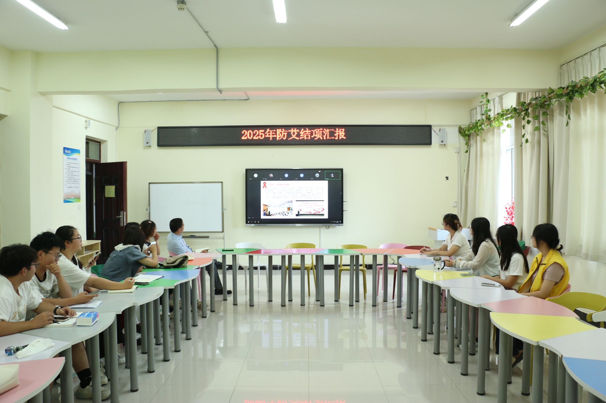 汇报中展示了防艾微电影《青春红丝带,防艾不止爱》,该影片由大学生心理发展协会和心晴协会联合创作,以大学生视角讲述防艾故事,通过情感叙事打破认知壁垒,强化学生自我保护意识。同时还展示了防范艾滋病的同伴宣讲员培训、防艾宣讲活动、微视频制作和防艾游园会等多项活动成果,累计参与学生5000余人次。省疾控专家对我校防艾项目给予好评,一致认为我们的项目活动丰富、主题突出、参与性强、覆盖面广,对广大学生认识和预防艾滋病有很大帮助。王永铎在总结中强调:“防艾不仅是医学课题,更是关乎平等尊严的社会行动。本年度活动通过创意传播、体验教育、朋辈互助三维联动,让防艾知识深入人心,让尊重理念落地生根。”