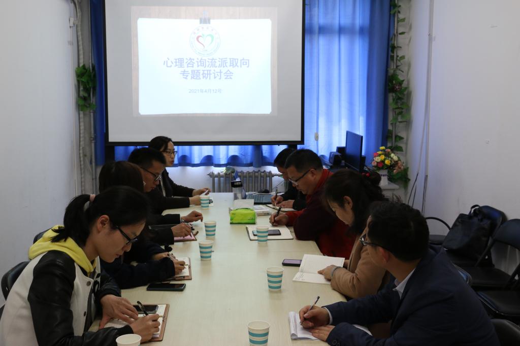 4月12日下午,我校心理健康教育与指导中心在621咨询观摩室召开心理咨询流派取向专题研讨会,心理中心专兼职咨询师10余人参加会议,会议由心理中心主任王永铎主持。