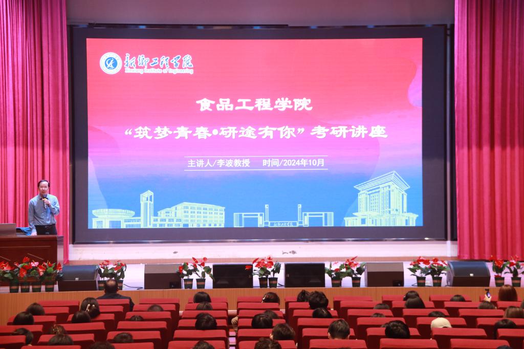 10月9日,李波处长一行赴新乡工程学院,在食品工程学院举行考研讲座,详细介绍了河南科技学院的师资力量、科研平台、研究生待遇以及研究生报考优势等方面,耐心解答了有关考研方面的问题。