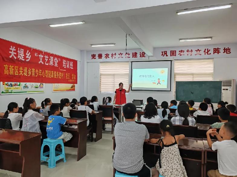 8月16日下午,应共青团高新区关堤乡委员会与高新区关堤镇文化站的诚挚邀请,河南科技学院五名研究生志愿者——李景歌、郭玉琴、普增燕、尉方显、杨乐,在关堤镇新时代文明实践站成功举办了一场别开生面的心理健康讲座。此次活动旨在普及心理健康知识,提升青少年情绪管理能力,为他们健康成长保驾护航。活动前期,辅导员李盼盼老师严格把关讲座内容,为此次活动的顺利开展奠定了基础。