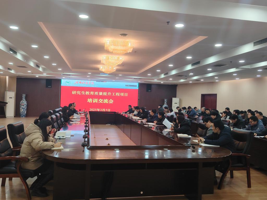 为进一步提升我校研究生教育教学质量,加强教师对河南省研究生质量工程项目与教学成果奖申报工作的了解与把握,3月5日下午,研究生处在行政楼206会议室组织举办了研究生教育质量工程项目及教学成果奖培训交流会。此次培训会吸引了众多校内从事研究生教育教学工作的教师及相关管理人员参加。培训交流会由研究生处副处长赵新亮主持。
