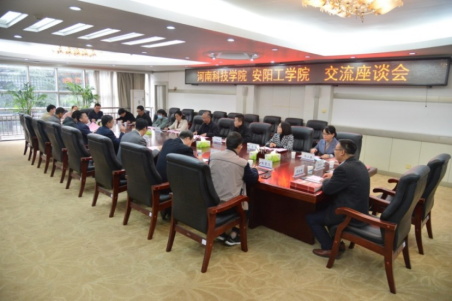 10月12日,赵明富一行到安阳工学院交流考察。在座谈会上,安阳工学院副校长万鹏杰致辞,他对我校一行的到来表示欢迎,简要介绍了学校的发展历程、办学定位、硬件设施、学科专业、科研平台、航空特色等方面的基本情况,以及近年来在硕士学位授予单位立项建设、联合培养研究生、政产学研合作、对外合作与交流等方面开展的工作与取得的成绩。他希望双方能够加强沟通交流、相互学习、相互借鉴,实现共同发展。会后,我校各二级学院负责人与对方生物与食品工程学院、机械工程学院、化学与环境工程学院、电子信息与电气工程学院、计算机科学与信息工程学院负责人进行了交流,并到各二级学院开展了研究生招生宣讲活动。