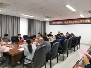 10月13日,赵明富一行到新乡学院交流考察。在座谈会上,新乡学院副校长夏新颜代表学校党委、行政对我校一行的到来表示热烈欢迎。赵明富简要说明了此次考察目的,介绍了我校的学科与学位点情况。会后,我校各二级学院负责人与新乡学院生命科学与基础医学院、化学与材料工程学院、教育科学学院、机电学院、数学与统计学院、计算机与信息工程学院、文学院、经济学院、外国语学院、土木工程建筑学院、美术学院、体育学院负责人进行了交流,会后到各二级学院进行了研究生招生宣讲。