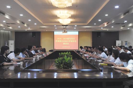 8月23日下午,2018、2019级乌克兰苏梅国立农业大学联合培养研究生座谈会在行政楼206会议室举行,校研究生处处长赵明富、人事处处长宋飞琼、国际交流与合作办公室主任胡建和及相关负责人出席,座谈会由研究生处处长赵明富主持。